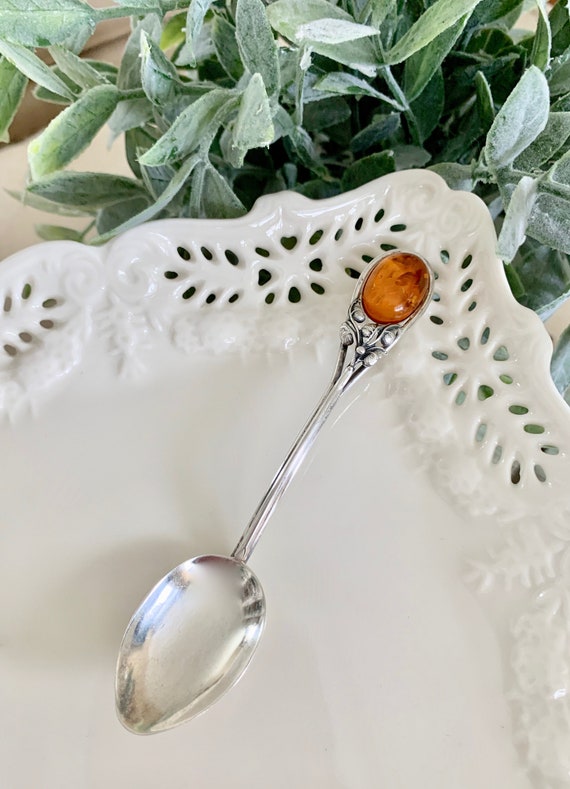 Vintage Honey Amber Sterling Silver Spoon Demitasse Tycaalak Etsy Uk